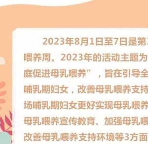 央视网消息:国家卫生健康委日前印发关于开展2023年世界母乳喂养周活动的通知,提出大力推进医疗机构、商场、车站、机场、景区等公共场所以及女职工较多的用人单位、托…